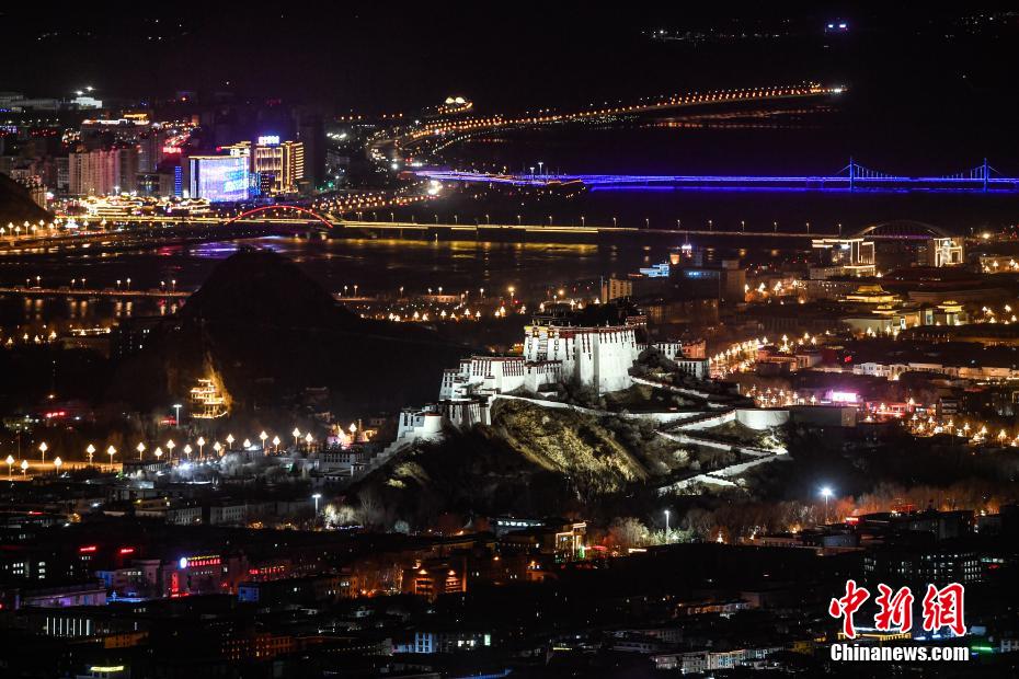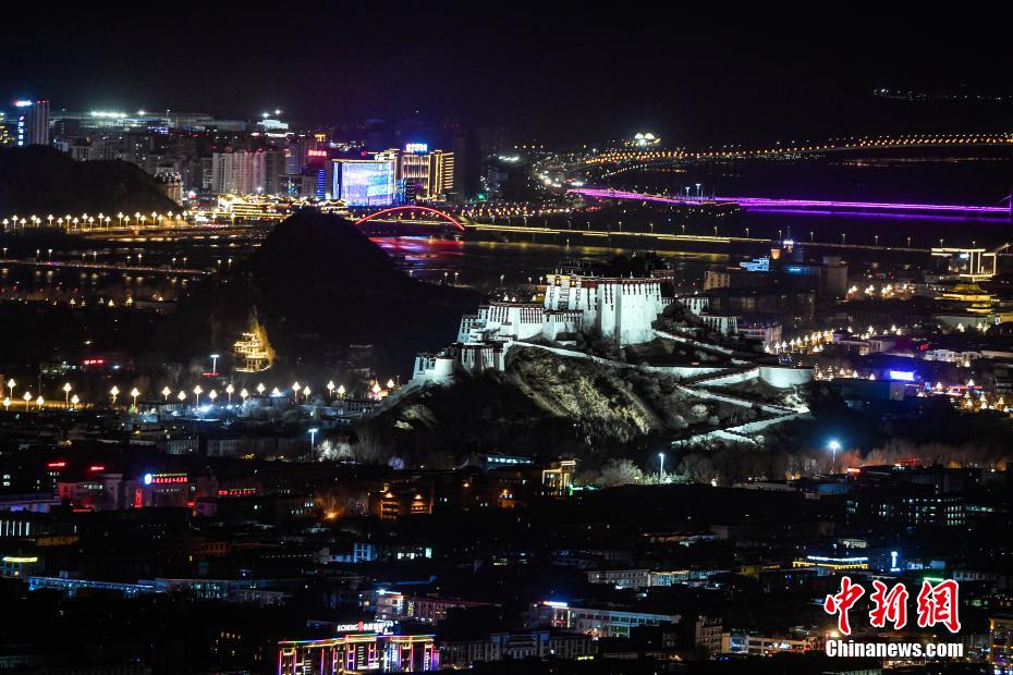 12月24日晚,西藏自治區(qū)拉薩市燈光璀璨,布達拉宮夜景迷人。中新社記者 貢嘎來松 攝