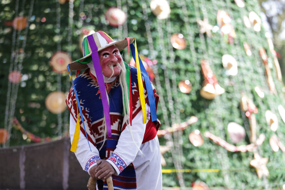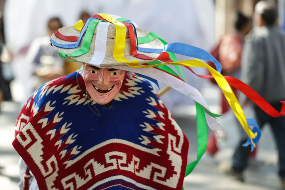 墨西哥面具舞中的“老者之舞”是墨西哥米卻肯州最具代表性的傳統(tǒng)舞蹈之一,起源于普列佩查原住民文化。這種舞蹈以其充滿活力的表現(xiàn)形式和文化象征而聞名,據(jù)說發(fā)展自墨西哥獨立之前人們向心目中的神明祈求豐收的儀式。在木屐的聲響與裝飾草帽的彩色絲帶互相映襯之下,每當(dāng)老者之舞上演,米卻肯州帕茨夸羅的廣場便化身為一座承載古老記憶的舞臺。