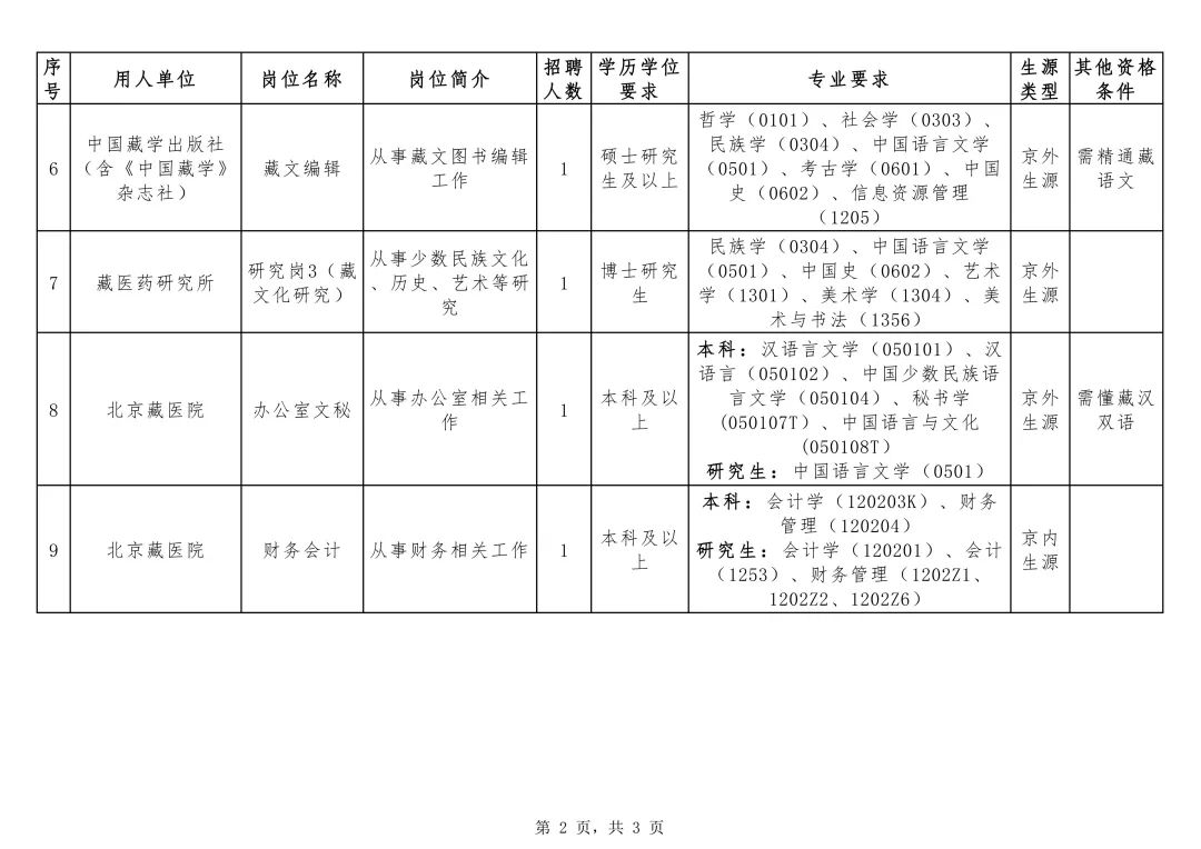 附件:中國(guó)藏學(xué)研究中心所屬事業(yè)單位2025年度公開(kāi)招聘應(yīng)屆高校畢業(yè)生崗位信息表