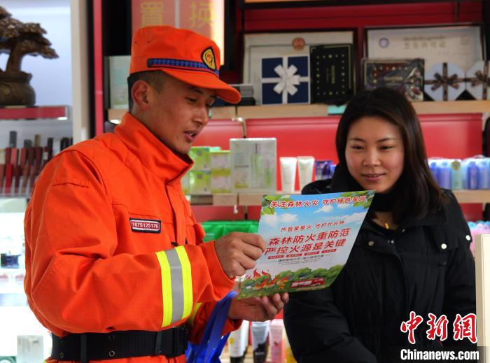 圖為西藏森林消防總隊(duì)林芝支隊(duì)巴宜區(qū)中隊(duì)元旦假期防火專項(xiàng)行動(dòng)中開展流動(dòng)宣傳。西繞拉翁 攝