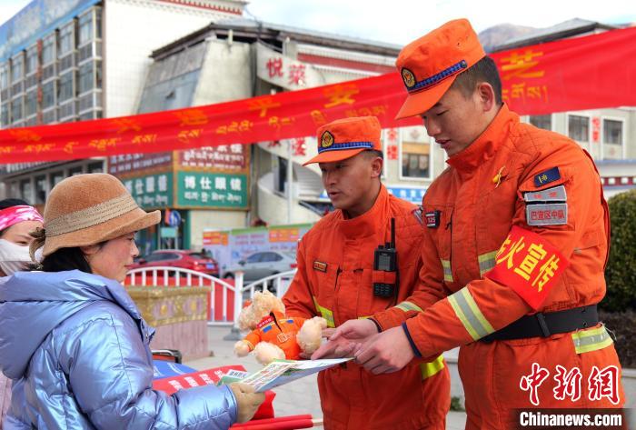 圖為西藏森林消防總隊(duì)林芝支隊(duì)巴宜區(qū)中隊(duì)元旦假期防火專項(xiàng)行動(dòng)中發(fā)放禮品。西繞拉翁 攝