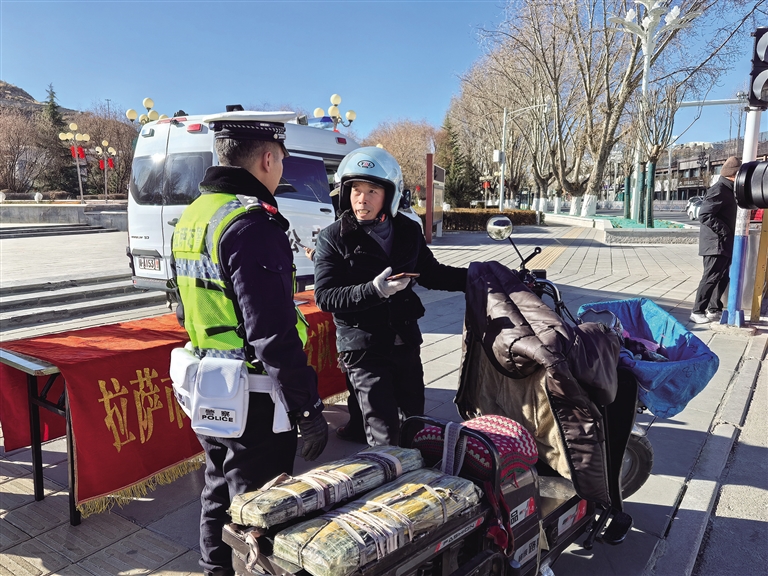 檢查過程中,民警還在部分重要交通路口和人員密集區(qū)域設(shè)立交通安全宣傳點(diǎn)位,搭建展板,向過往的市民和電動車駕駛者告知超標(biāo)電動車禁止上路的原因,講解超標(biāo)電動車退市處理相關(guān)流程,讓廣大市民群眾更直觀地了解騎乘超標(biāo)電動車出現(xiàn)交通事故的嚴(yán)重后果,強(qiáng)調(diào)遵守交通法規(guī)和佩戴安全頭盔等行為的重要性。拉薩市民曲女士告訴記者:“聽了交警宣講的交通安全知識,我覺得很有意義,以后我會自覺遵守交通規(guī)則,確保出行安全。”