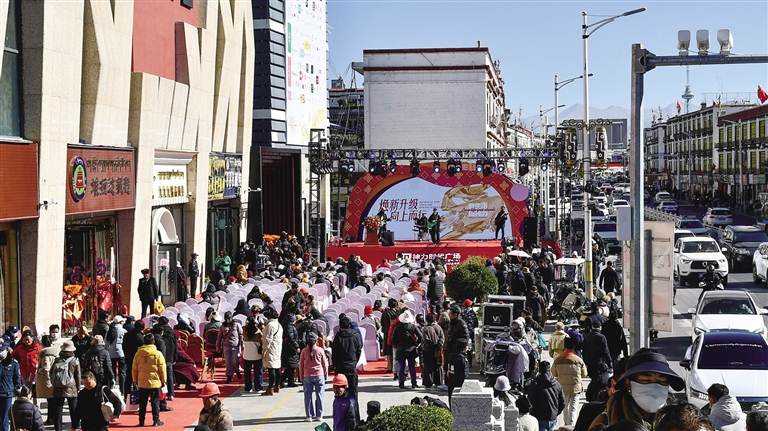 1月1日,拉薩神力時(shí)代廣場(chǎng)歷經(jīng)7個(gè)月左右的裝修升級(jí)后,正式恢復(fù)營(yíng)業(yè),首日銷售額突破300萬(wàn)元,客流量高達(dá)4.26萬(wàn)人次。開業(yè)儀式現(xiàn)場(chǎng)人頭攢動(dòng)、熱鬧非凡,不少市民早早來(lái)到商場(chǎng)外,期待一睹新面貌?!拔壹揖驮诟浇?,以前家里人很愛逛這個(gè)商場(chǎng),相信這次裝修升級(jí)后,會(huì)帶給我們?nèi)碌南M(fèi)體驗(yàn)?!崩_市民貢先生說(shuō)。