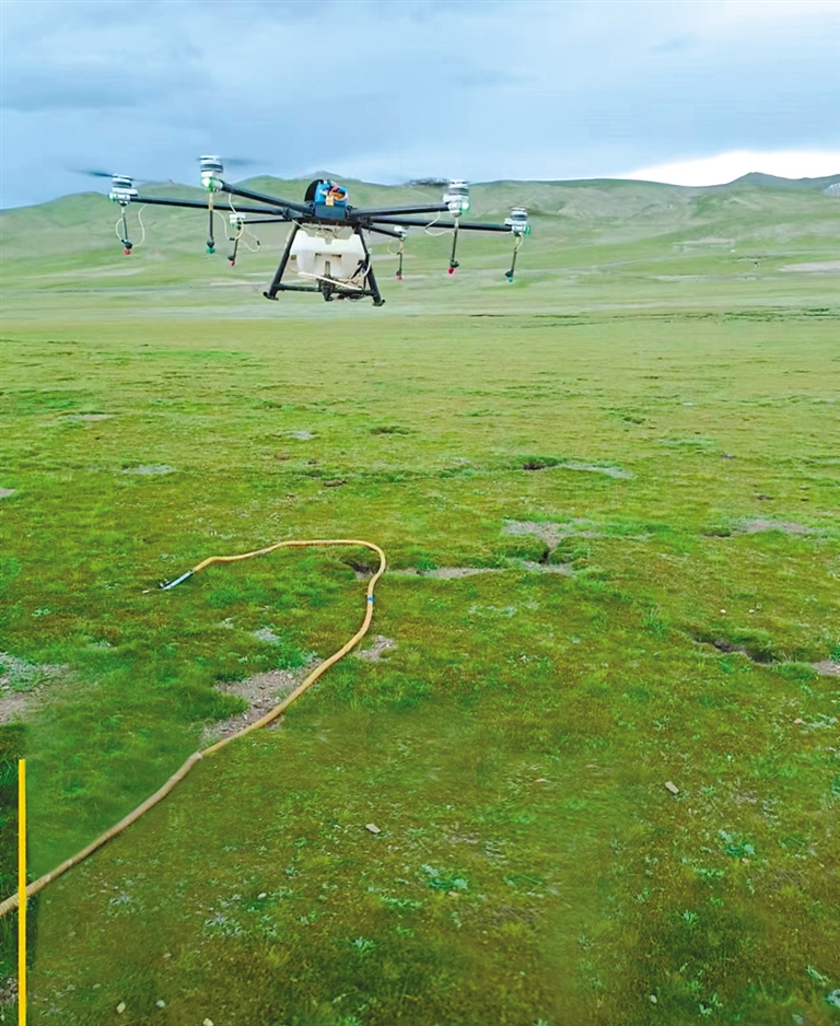 據(jù)介紹,高原毛蟲是西藏高原牧區(qū)的重要害蟲,多發(fā)生在海拔3000至5000米的高山草原,對莎草科、禾本科、豆科、蓼科、薔薇科等各類牧草危害嚴(yán)重,嚴(yán)重影響牧草生長和畜牧業(yè)的發(fā)展。在項(xiàng)目實(shí)施過程中,項(xiàng)目組確定使用植保無人機(jī)噴藥,防治高原毛蟲。
