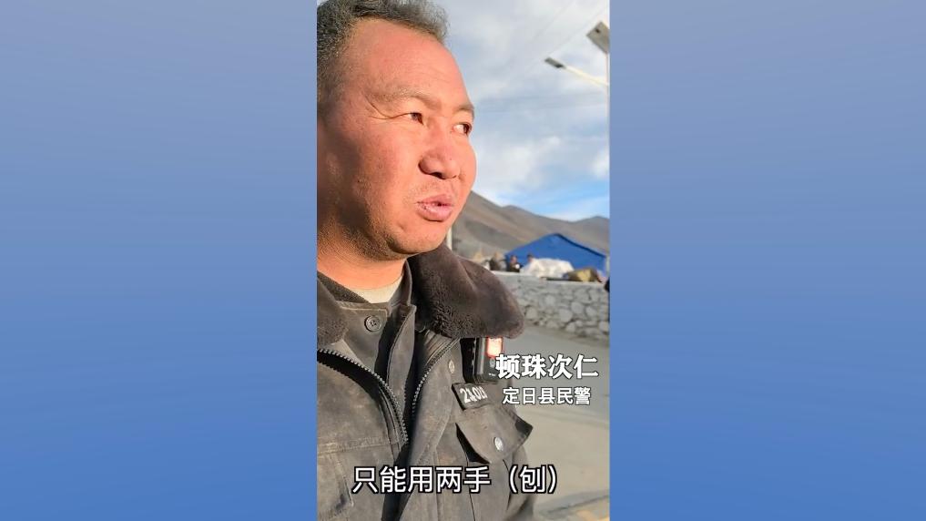 “我們用雙手把被埋人員刨出來?!倍ㄈ湛h公安局干警頓珠次仁的身上全是灰塵,臉上的汗水沖出一道道溝,雙手指甲里塞滿了泥土和血絲。