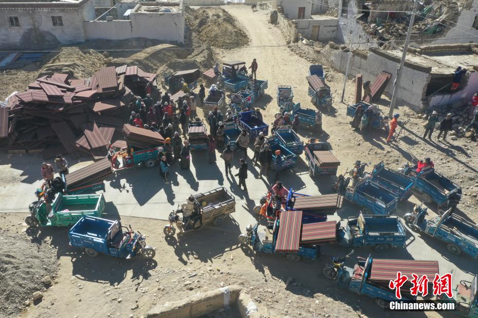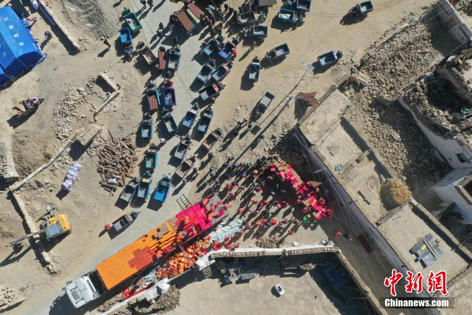 1月9日,西藏自治區(qū)定日縣曲洛鄉(xiāng)措昂村安置點,愛心企業(yè)為受災(zāi)民眾搭建活動板房。當(dāng)日,位于西藏自治區(qū)定日縣曲洛鄉(xiāng)措昂村安置點,西藏各級救援人員和愛心企業(yè)不斷轉(zhuǎn)運、發(fā)放生活物資、搭建活動板房、全力保障受災(zāi)民眾的飲食供應(yīng)等,保障受災(zāi)民眾基本生活。中新社記者 貢嘎來松 攝