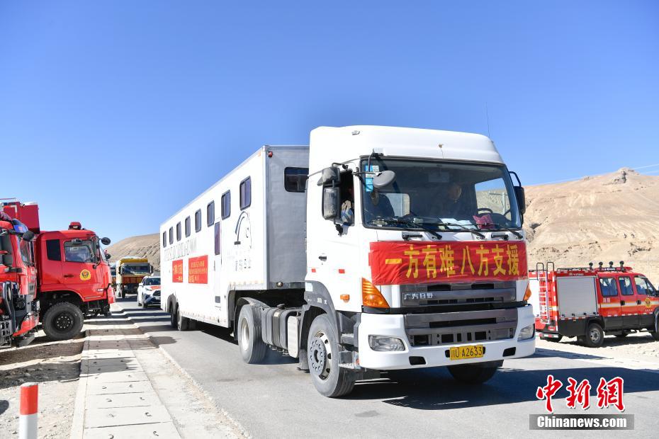 1月9日,西藏自治區(qū)定日縣曲洛鄉(xiāng)措昂村,滿載救災(zāi)物資的貨車抵達(dá)安置點。當(dāng)日,位于西藏自治區(qū)定日縣曲洛鄉(xiāng)措昂村安置點,西藏各級救援人員和愛心企業(yè)不斷轉(zhuǎn)運、發(fā)放生活物資、搭建活動板房、全力保障受災(zāi)民眾的飲食供應(yīng)等,保障受災(zāi)民眾基本生活。中新社記者 貢嘎來松 攝