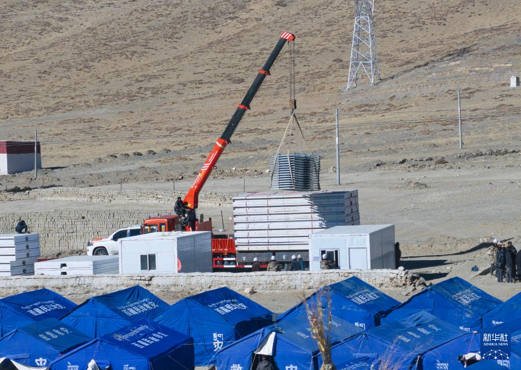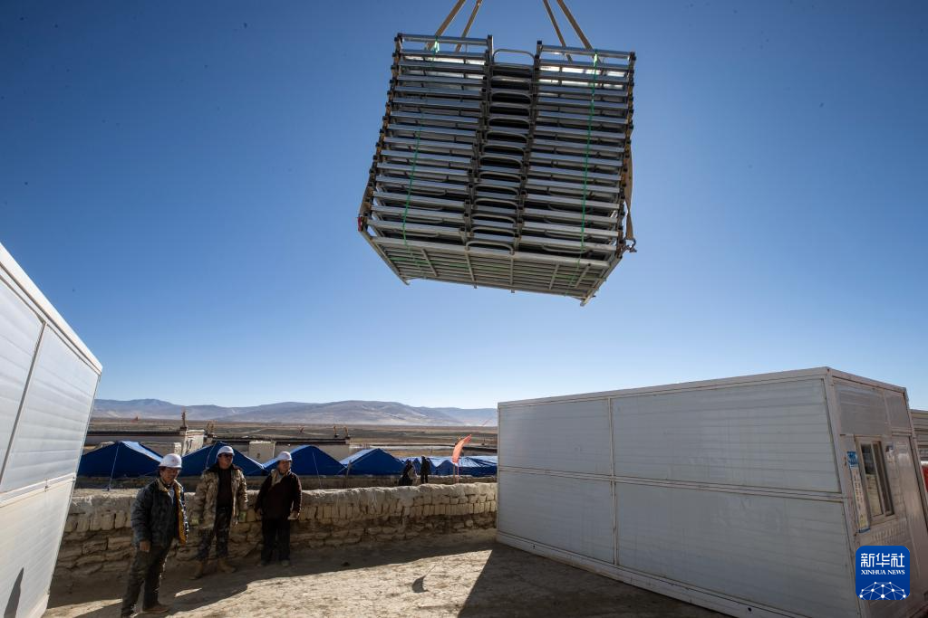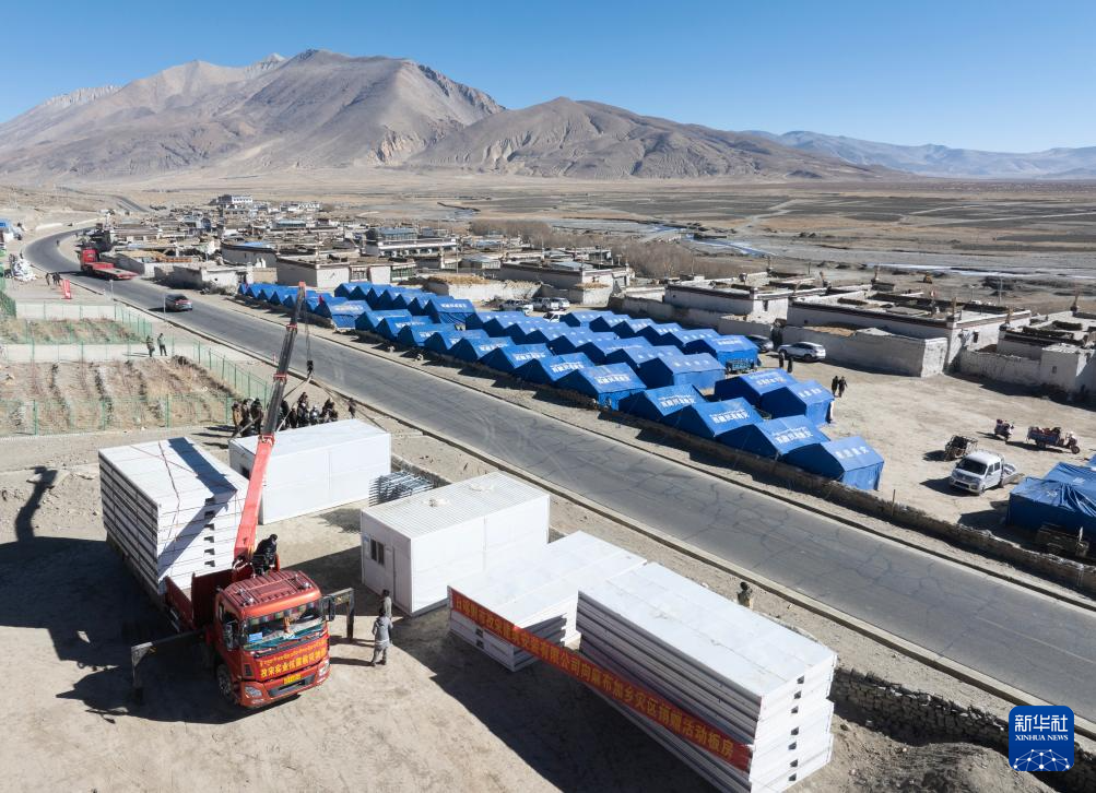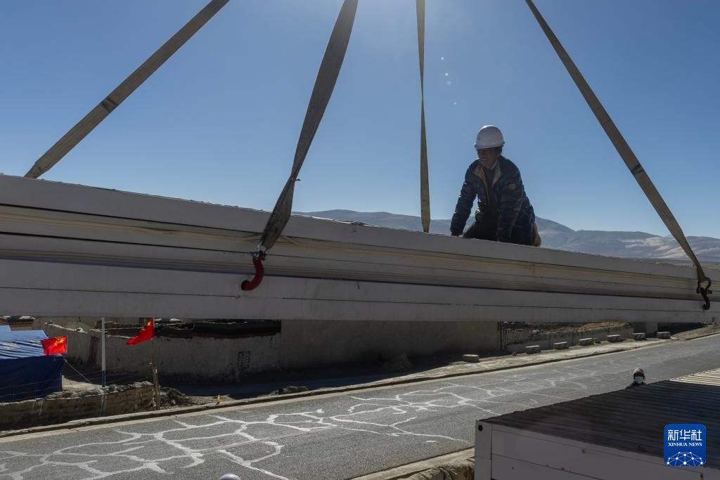 當日,在薩迦縣麻布加鄉(xiāng)白拉村,工程人員與有相應技術的村民一起建設活動板房。據了解,這是薩迦縣地震災區(qū)開建的第一批板房。