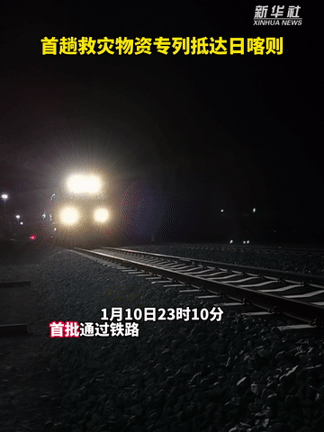 1月10日23時10分,首批通過鐵路運輸的抗震救災物資搭載95001次專列順利抵達西藏自治區(qū)日喀則西站。