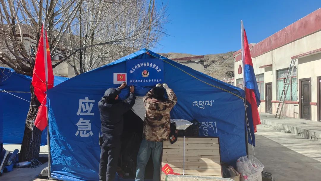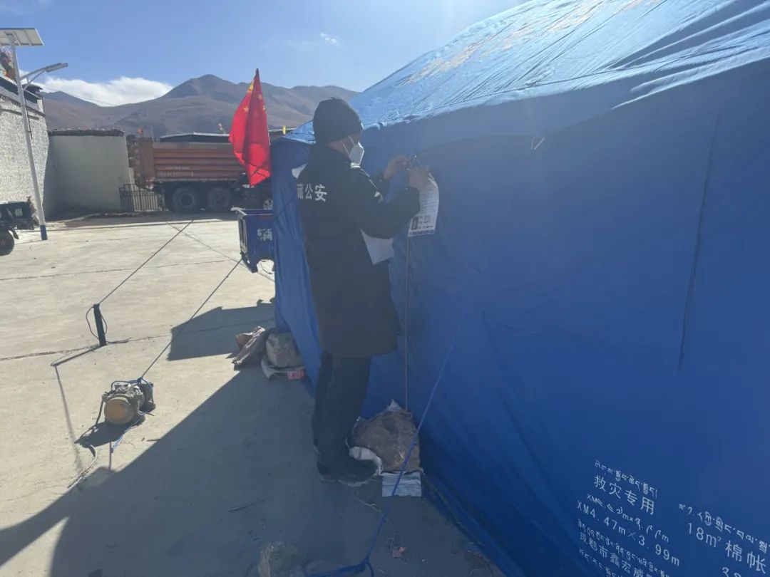 災(zāi)情如令,責(zé)任重于泰山。在這場爭分奪秒與時間賽跑的抗震救災(zāi)戰(zhàn)斗中,拉孜公安始終堅定地與群眾并肩同行,以“伴隨式”守護的帳篷警務(wù)室,為受災(zāi)群眾筑牢安全防線。一頂頂 “帳篷警務(wù)室” 以迅雷不及掩耳之勢搭建完成,恰似一座座堅固的堡壘;一面面鮮艷的黨旗在廢墟之上獵獵作響,傲然飄揚,它們共同構(gòu)成了守護受災(zāi)群眾生命財產(chǎn)安全的鋼鐵長城,成為抗震救災(zāi)戰(zhàn)場上一道令人動容的亮麗風(fēng)景線 。