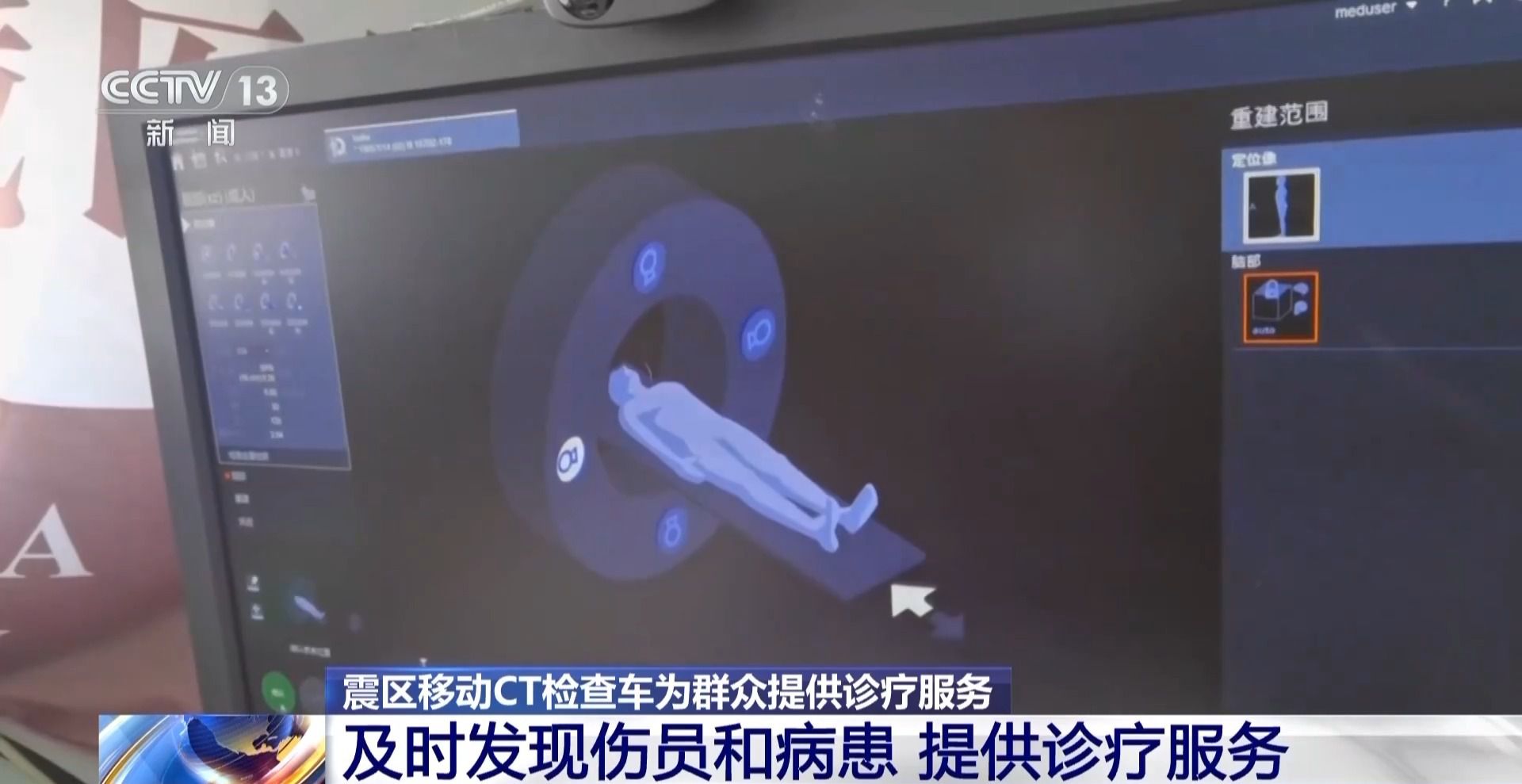 這個移動CT檢查車開到這里的目的是什么?就是醫(yī)護人員要把這些最先進的裝備拿到基層來,讓這些受災(zāi)的群眾能及時地進行檢查、發(fā)現(xiàn)病患。