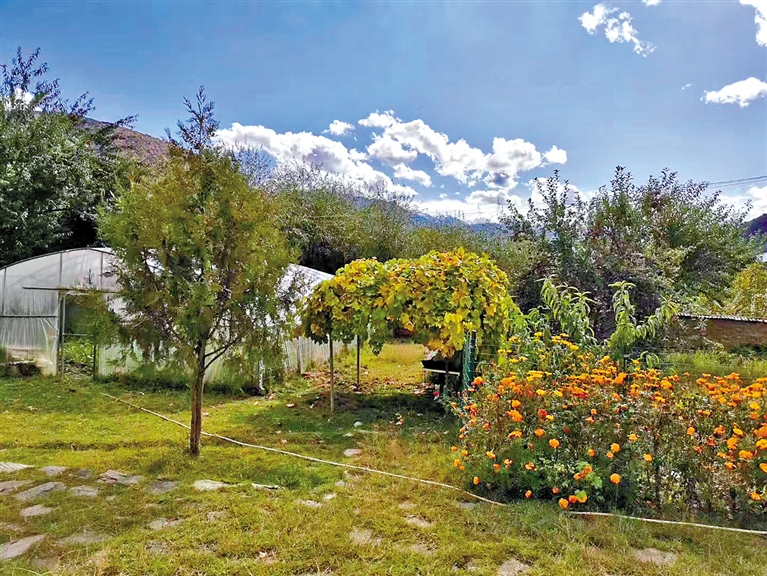 林芝市巴宜區(qū)米瑞鄉(xiāng)麥娘麥村一戶(hù)村民的庭院綠化環(huán)境。記者 劉楓 攝