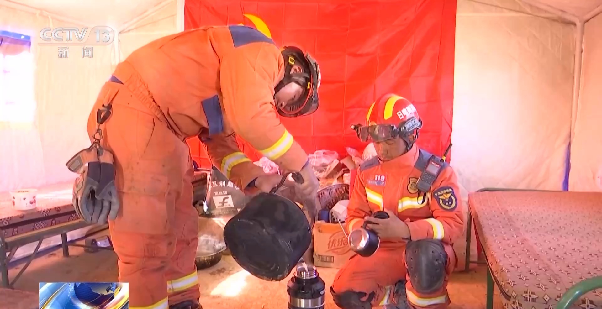 甜茶、藏面、熱牛奶,在這個臨時帳篷里,消防員們正在為木隊村的百姓們制作當天的午飯。