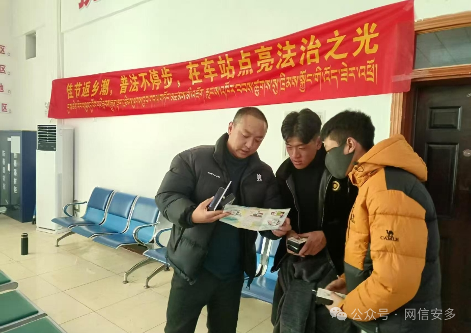2025年1月23日,在蛇年春節(jié)返鄉(xiāng)潮的高峰,安多縣普法辦聯(lián)合縣禁毒辦在安多火車站開(kāi)展以“佳節(jié)返鄉(xiāng)潮,普法不停步,在車站點(diǎn)亮法治之光”為主題的宣傳活動(dòng),為歸心似箭的旅客們送上了一份特殊的“法律年貨”。