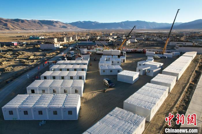 圖為1月10日,西藏定日6.8級(jí)地震后,定日縣長(zhǎng)所鄉(xiāng)正進(jìn)行施工組裝安置板房。記者 江飛波 攝