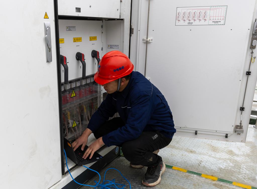 在華電西藏才朋光伏電站升壓站,工作人員正在檢查設(shè)備。新華社記者姜帆 攝