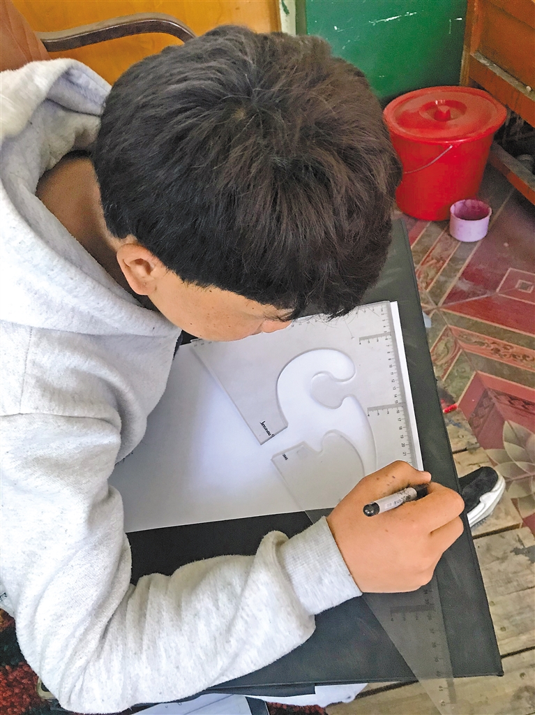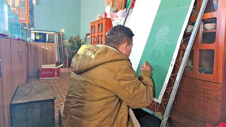 “那段時間是最難熬的,每天睜開眼除了吃飯,其他時間都在畫畫。”洛追告訴記者,當他真正開始學習時,才深刻體會到要想成為唐卡手藝人,需要付出更多努力?!耙苍脒^放棄,但還是咬咬牙堅持了下來?!闭f到這里,洛追有些靦腆地笑了笑。