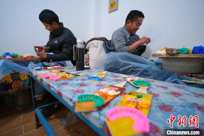 “我大概從初中一年級開始,每年藏歷新年前都和父親來拉薩捏酥油花,除了種地和打工,酥油花是我們家的主要收入來源?!?月20日,在拉薩市城關區(qū)吉崩崗街道一出租房內,24歲的大學生扎西歐珠對中新社記者講述寒假捏制酥油花的經歷。