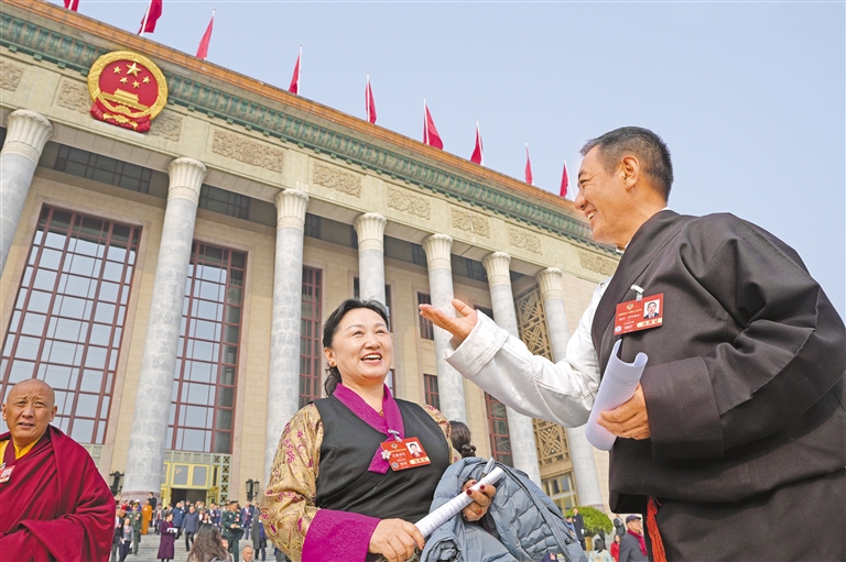圖為住藏全國政協(xié)委員等參會(huì)人員在人民大會(huì)堂前合影留念。記者 旦增平措 次旦央吉 攝