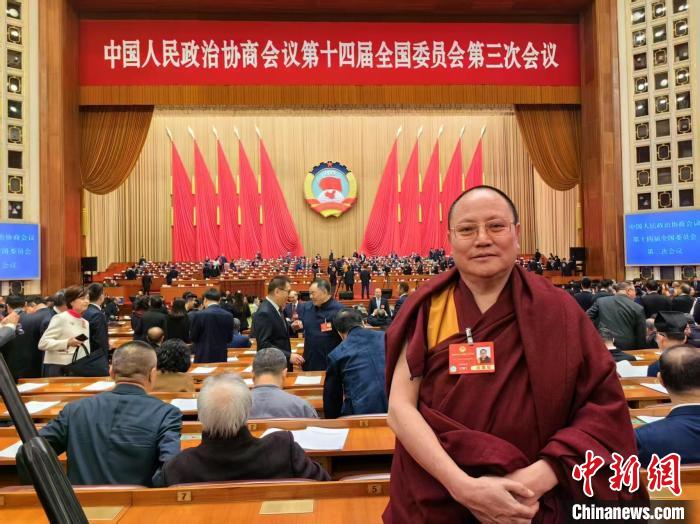 3月7日,全國(guó)政協(xié)委員達(dá)扎在北京參加中國(guó)人民政治協(xié)商會(huì)議第十四屆全國(guó)委員會(huì)第三次會(huì)議。(受訪者供圖)