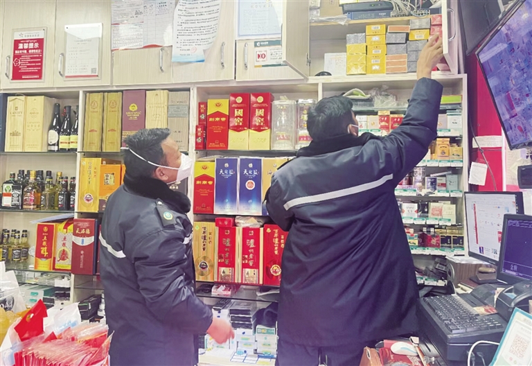 執(zhí)法人員在煙草專賣(mài)店檢查。(資料圖)