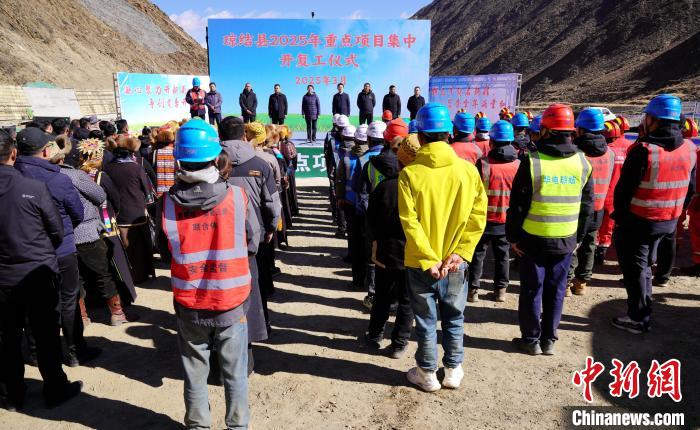 圖為西藏山南市瓊結縣2025年重點項目集中開復工儀式現場。曲杰 攝
