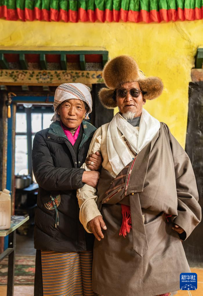 旺慶老人(右)和家人在家里合影(3月16日攝)。新華社記者 丁增尼達 攝