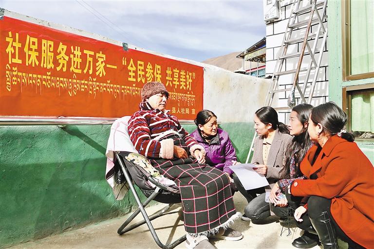 山南市瓊結(jié)縣人力資源和社會保障局工作人員入戶辦理養(yǎng)老保險(xiǎn)待遇資格認(rèn)證。