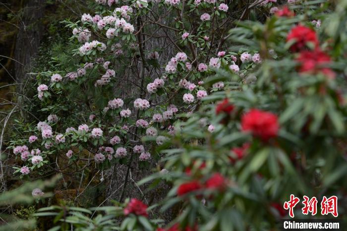 4月3日,西藏自治區(qū)林芝市波密縣野生杜鵑盛放,漫山遍野,匯成夢幻花海。這里品種多樣,有波密杜鵑、淡鐘杜鵑等。花朵色彩繽紛,粉紅嬌俏、玫紅熱烈、朱紅明艷、淺紫神秘。它們廣泛分布于山坡、河谷、森林,與雪山、溪流相互映襯,勾勒出絢麗的春日盛景 。中新社記者 貢嘎來松 攝