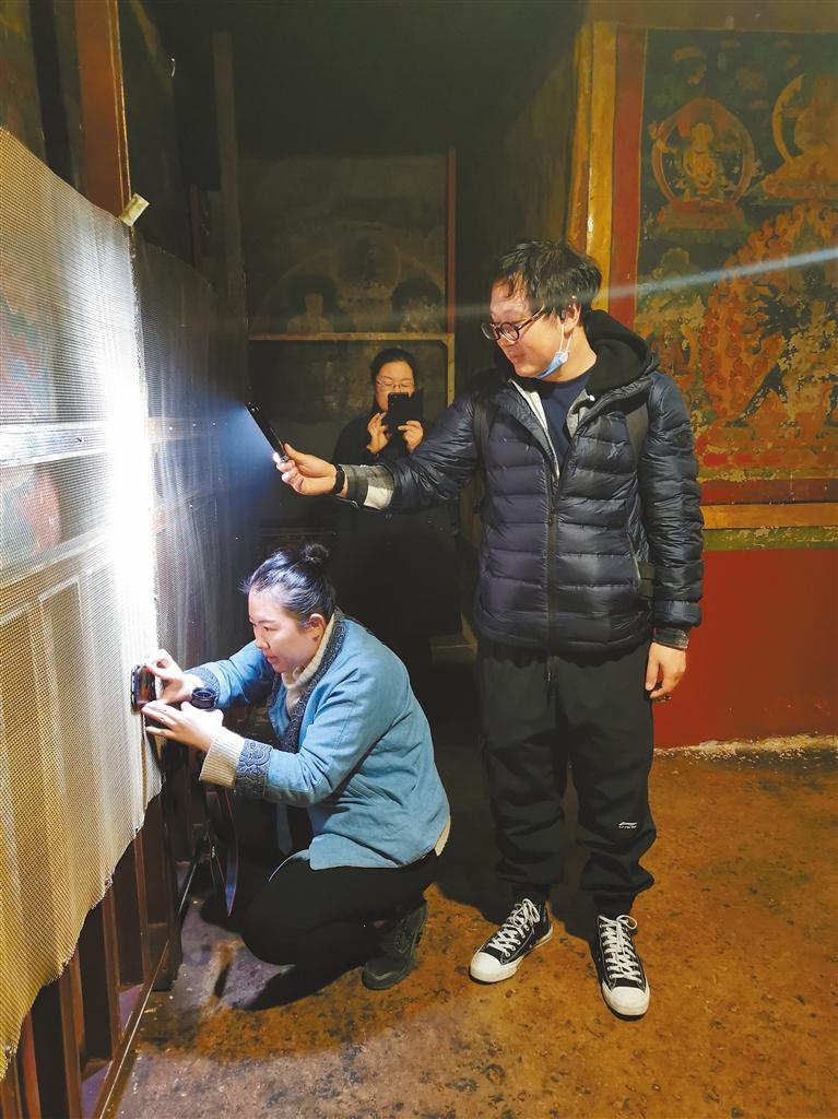 圖為劉曉彤(左一)在辨認(rèn)壁畫(huà)內(nèi)容。