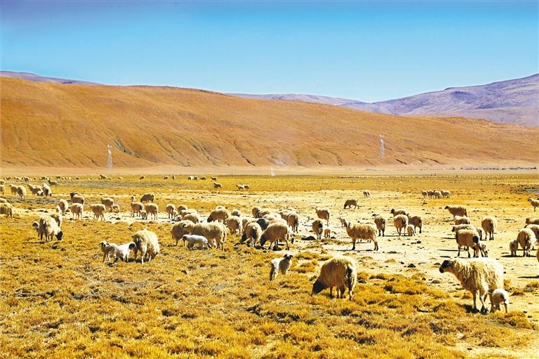 哲古草原上,羊群正悠閑地吃草。牧民旦增懷里抱著一只小羊坐在路邊,輕柔地?fù)崦?。“這是我們牧民的希望啊?!彼哪樕涎笠缰斋@的喜悅。