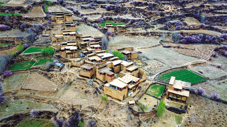 繼續(xù)向前出發(fā),山路崎嶇,我們迷路了,不過迷路是探訪秘境的前奏。當(dāng)導(dǎo)航徹底失靈,翻越數(shù)座山后,一片粉色花海突然從山坳間涌出——我們到了敏都鄉(xiāng)馬覺村。金沙江在此劈開峽谷,海拔驟降,桃李綴滿枝頭。村民正修建羊圈,見我們風(fēng)塵仆仆,笑著問我們要去哪兒。得知我們是過來采風(fēng)的,村民便笑著指向山間:“那邊的桃花更好看,現(xiàn)在是桃花季!”