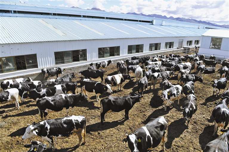 山南市隆子縣聶雄標(biāo)準(zhǔn)化奶牛養(yǎng)殖場(chǎng)。記者 李洲 攝