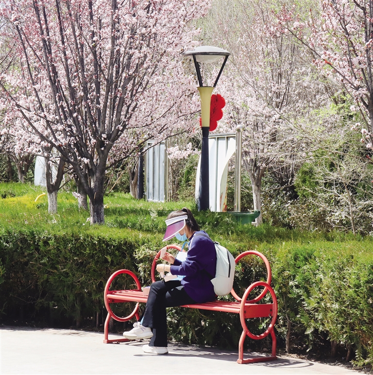 春日的拉薩,從不缺漫步曬太陽、賞花的路線。城北的街道,早已披上了春日的花衣。娘熱北路、慈松塘中路、慈松塘東路一帶,馬路兩側(cè)的花木被春季染上新的碧綠與粉紅,就連公交車站都被花朵裝點(diǎn)得格外浪漫。