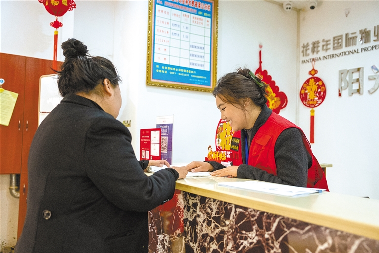轄區(qū)居民正在向“鄰里驛站”工作人員咨詢問(wèn)題。