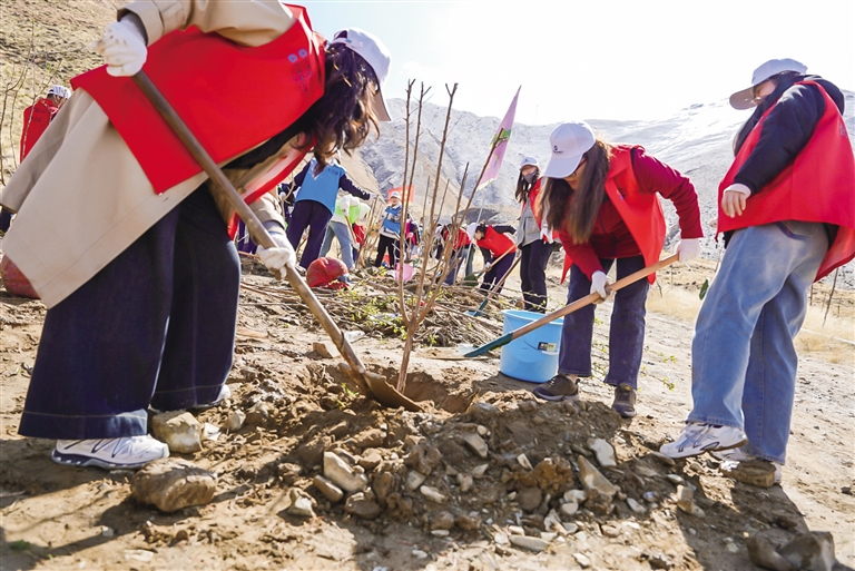 4月29日,由中國建設(shè)銀行西藏自治區(qū)分行、中國建設(shè)銀行總行數(shù)據(jù)管理部、中國建設(shè)銀行上海大數(shù)據(jù)智慧中心、西藏自治區(qū)慈善總會、西藏傳媒集團(tuán)聯(lián)合舉辦的“遇‘建’南北山·‘?dāng)?shù)’植生態(tài)林——我在西藏有棵樹”公益植樹活動在拉薩市白定東2-1號片區(qū)建行南北山綠化項(xiàng)目地舉行。