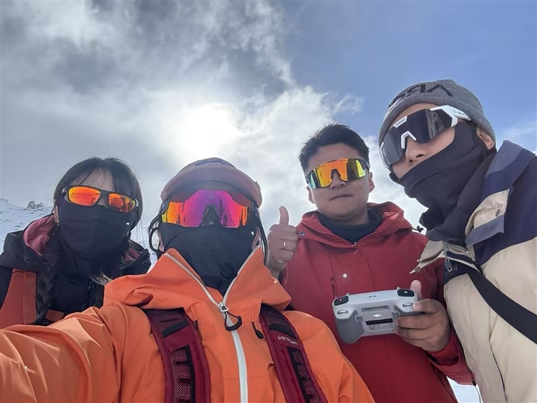 今年是“95后”貢曲羅杰第二次登頂,盡管去年參加過洛堆峰登山探險(xiǎn)活動(dòng),可雪山的魅力依舊讓他深深著迷?!拔铱粗鵁o人機(jī)拍攝下登山者們依次攀爬的過程,莫名激動(dòng)。而當(dāng)我將焦距調(diào)至七倍對(duì)準(zhǔn)山頂時(shí),雪山更是讓我震撼,這就是我一直想要記錄的畫面?!必暻_杰說。為了能精準(zhǔn)調(diào)整相機(jī)參數(shù),他放棄了保暖必需的手套,一心專注拍攝,直至完成任務(wù)。此次攀登洛堆峰,貢曲羅杰和阿旺尼瑪拍攝了大量出彩的視頻和圖片。