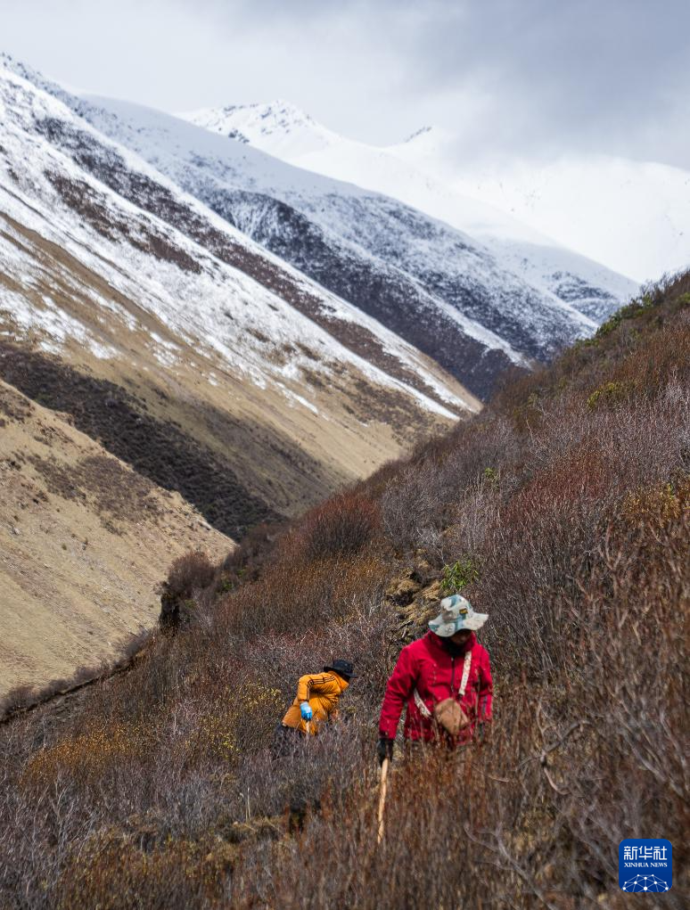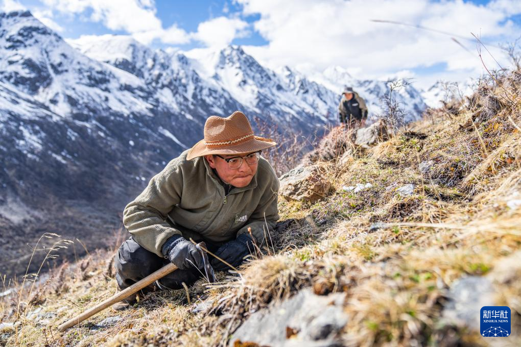 采挖蟲草是當(dāng)?shù)啬撩裰饕脑鍪諄碓粗唬谖鞑l(xiāng)采挖蟲草的牧民白嘎說:“現(xiàn)在采挖蟲草更加規(guī)范了,每天早上我們高高興興上山,傍晚安安全全地滿載而歸。”雪山正見證著傳統(tǒng)生計(jì)與現(xiàn)代生態(tài)保護(hù)理念的融合與交匯。