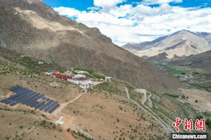 5月29日,航拍拉薩乃朗寺光伏電站,該電站年發(fā)電量約100萬(wàn)千瓦時(shí),并配備光儲(chǔ)充一體化系統(tǒng),可完全滿足寺廟的使用需求。(無(wú)人機(jī)畫面)中新社記者 江飛波 攝