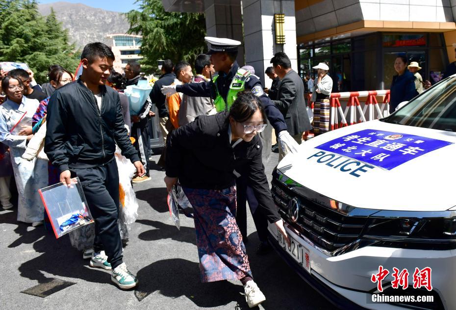6月9日上午11時(shí)30分,西藏自治區(qū)2025年普通高考完成所有科目考試。圖為家長在拉薩市拉薩中學(xué)考點(diǎn)外為結(jié)束考試的孩子獻(xiàn)哈達(dá)。中新社記者 李林 攝