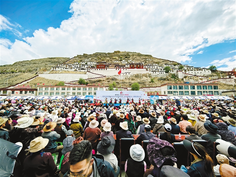 在日喀則市喜迎西藏自治區(qū)成立60周年暨2025年“文化和自然遺產(chǎn)日”非遺宣傳展示活動(dòng)中,來(lái)自全市各縣(區(qū))的19支藏戲隊(duì)輪番展演,各色非遺產(chǎn)品集中亮相,為現(xiàn)場(chǎng)觀眾獻(xiàn)上了一場(chǎng)“非遺盛宴”。
