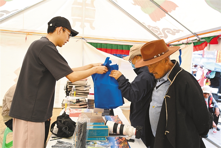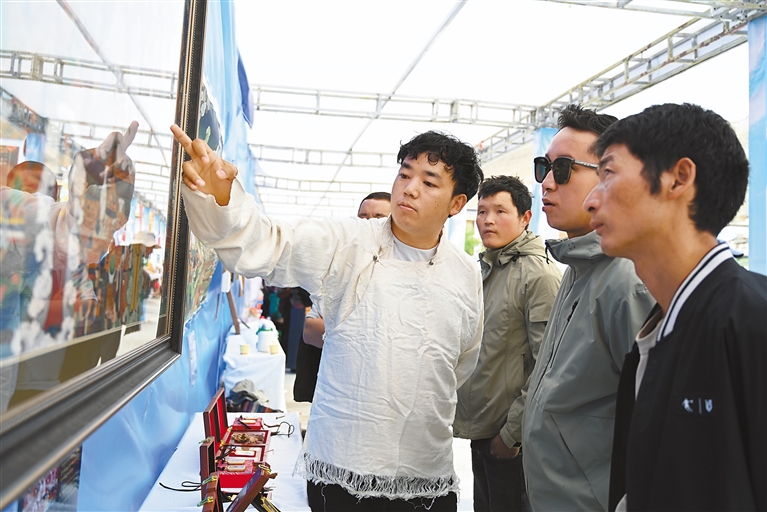 在欣賞視聽(tīng)盛宴的同時(shí),國(guó)家級(jí)非遺項(xiàng)目江孜卡墊織造技藝、自治區(qū)級(jí)非遺項(xiàng)目牛村陶器制作技藝、市級(jí)非遺項(xiàng)目恰哇編織技藝等50個(gè)非遺項(xiàng)目,以及民族手工業(yè)產(chǎn)品、南木林縣縣級(jí)非遺產(chǎn)品集中展覽展銷(xiāo),備受消費(fèi)者青睞。各非遺產(chǎn)品展銷(xiāo)點(diǎn)收入不斷、訂單不斷,經(jīng)初步統(tǒng)計(jì),活動(dòng)現(xiàn)場(chǎng)非遺產(chǎn)品銷(xiāo)售總額達(dá)45萬(wàn)余元。