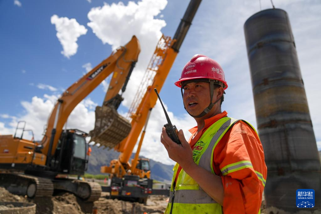 工人在進行樁基機械成孔作業(yè)(6月18日攝)。新華社記者 晉美多吉 攝