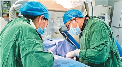 達娃次仁(右一)正在做起搏器植入術。西藏自治區(qū)人民醫(yī)院供圖