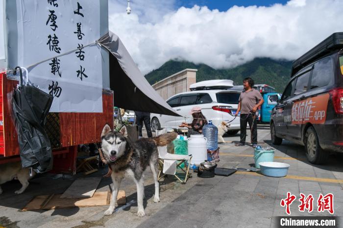 6月29日,西藏林芝宇拓公園自駕露營地的哈士奇,它跟隨主人乘電動三輪車進(jìn)藏。中新社記者 江飛波 攝