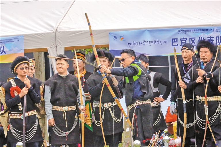 2024年9月29日,“千人工布響箭齊發(fā)”——吉尼斯世界紀(jì)錄評選活動在林芝市巴宜區(qū)舉行,300名選手同臺比拼,創(chuàng)下了“最大規(guī)模工布響箭錦標(biāo)賽”的吉尼斯世界紀(jì)錄。這一傳承千年的西藏體育項目,散發(fā)出了新的光芒。