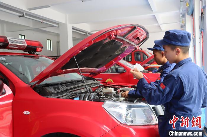 圖為消防員正在保養(yǎng)車(chē)輛。西藏林芝市森林消防支隊(duì)供圖
