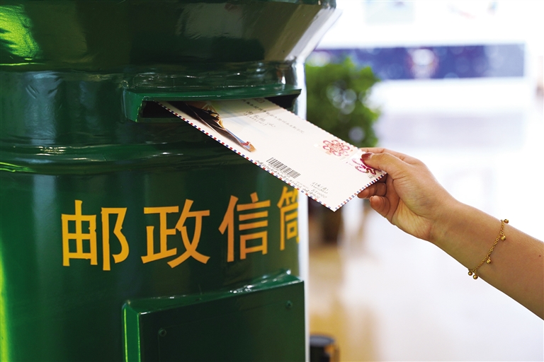 游客正在寄出明信片。