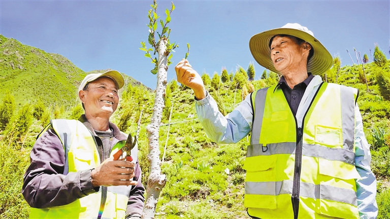 工程帶來的不僅是生態(tài)效益,更有可觀社會效益。項目實施以來,累計吸納3541人次墨竹籍群眾參與建設。從挖穴栽苗到日常養(yǎng)護,當?shù)厝罕姵蔀樯鷳B(tài)建設主力軍。達瓦次仁感慨:“在家門口就業(yè),每日收入200多元,還能參與家鄉(xiāng)綠化,內(nèi)心踏實又滿足。”