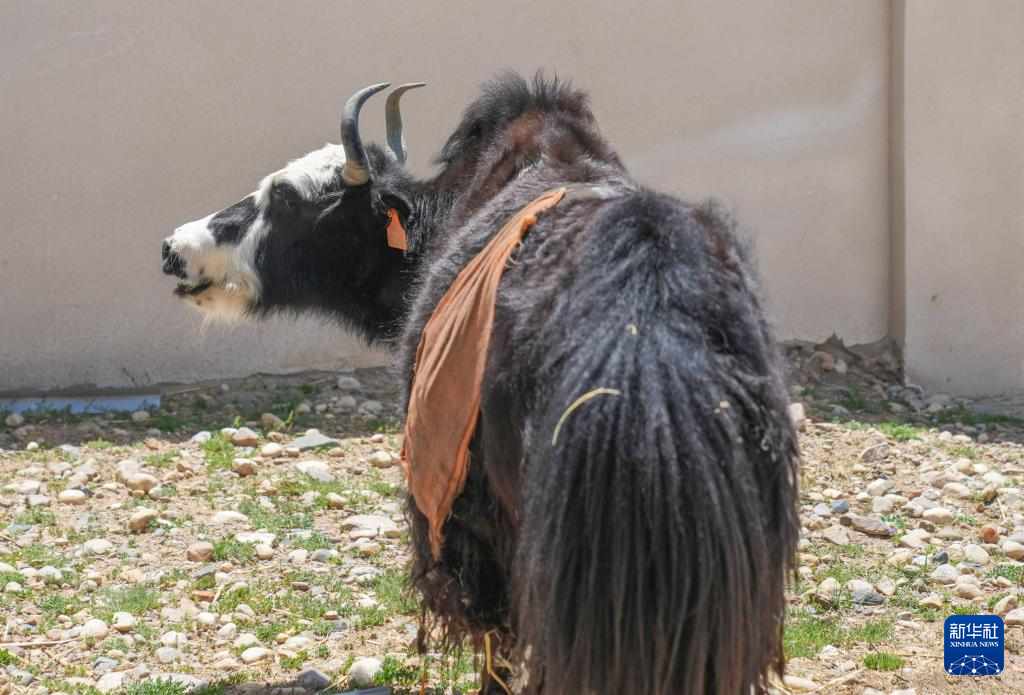 7月11日,在西藏(當雄)金絲野牦牛繁育基地,工作人員檢查克隆牦牛身體狀況。新華社記者 晉美多吉 攝?